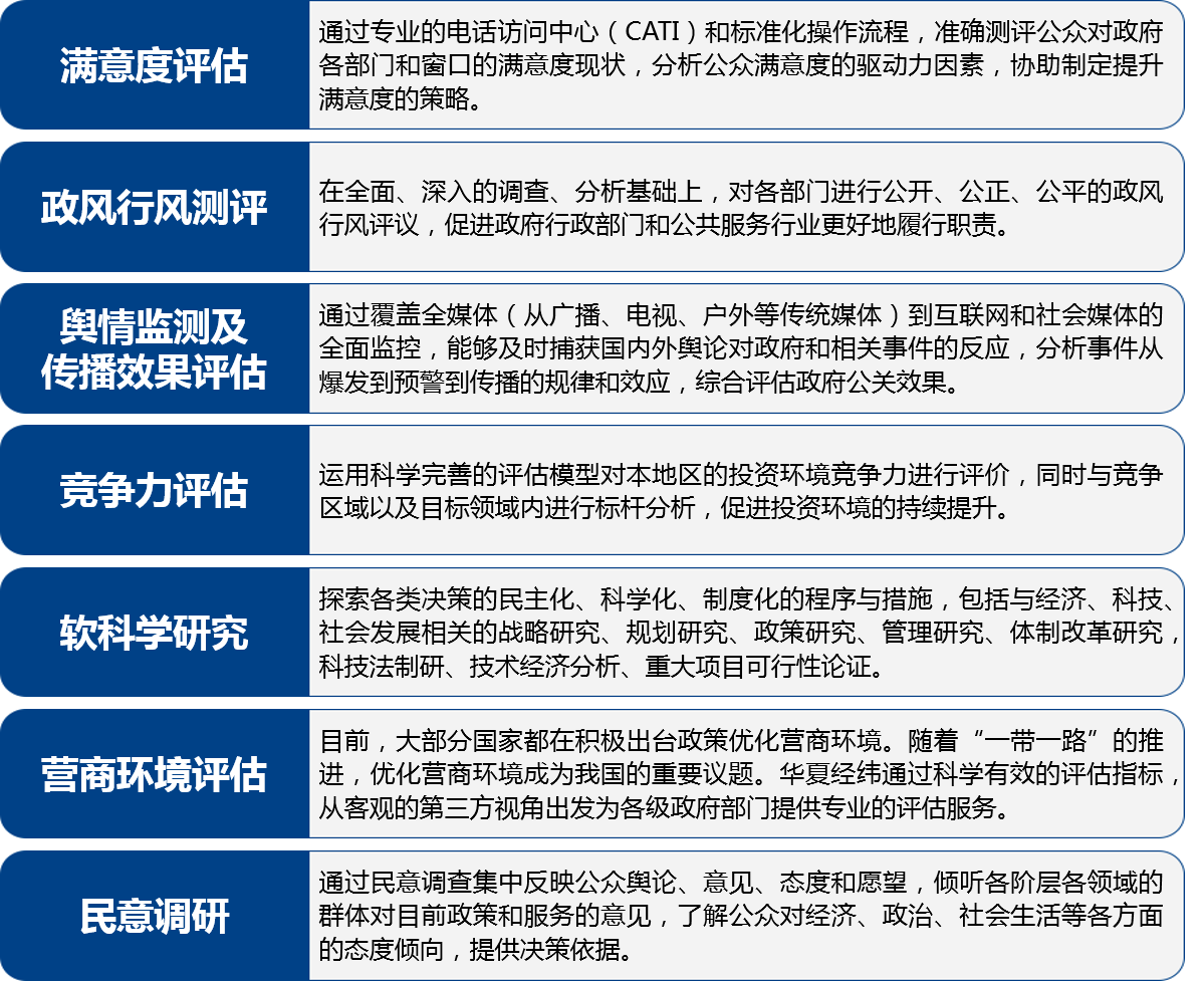 華夏經緯可以為各級政府部門提供以下方面的研究咨詢服務: